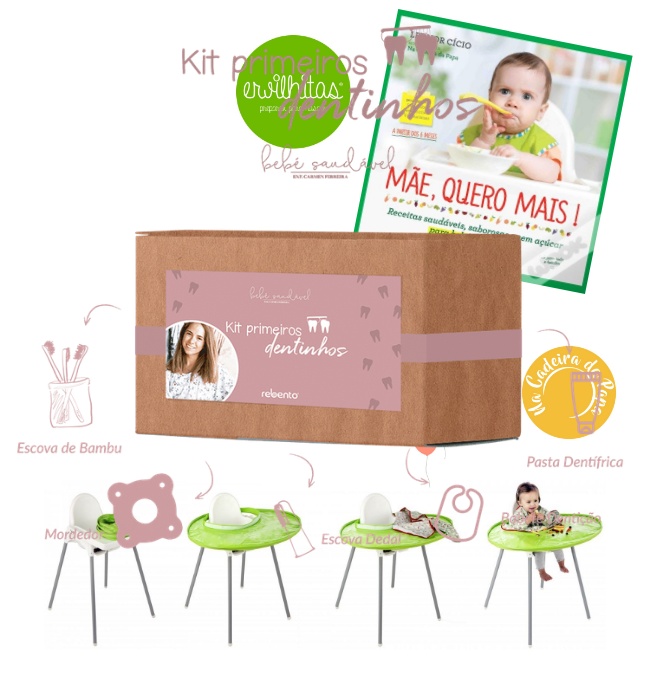 Criado juntamente com a Enfermeira Carmen Ferreira do projeto Bebé Saudável, o Kit Rebento Primeiros Dentinhos tem quatro produtos essenciais para os papás e bebés a partir dos seis meses. Numa só prenda, vai estar a oferecer produtos e um guia escrito por uma profissional de saúde!